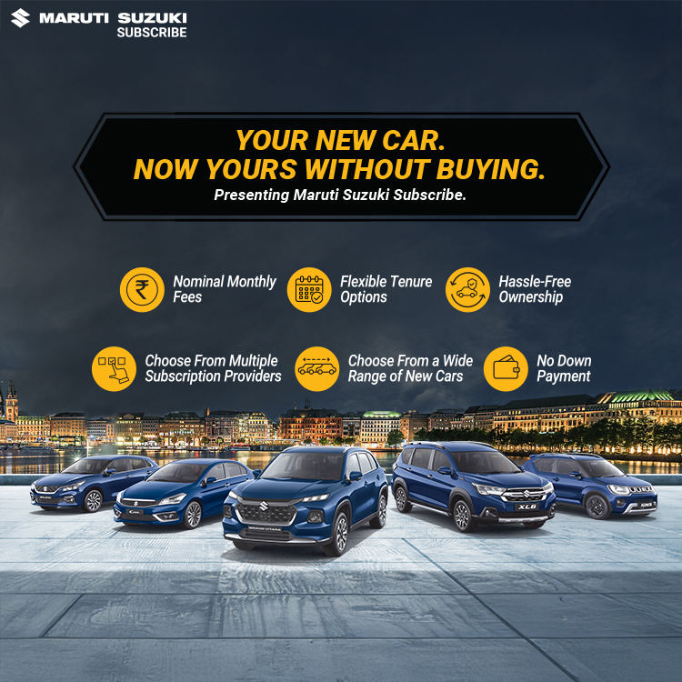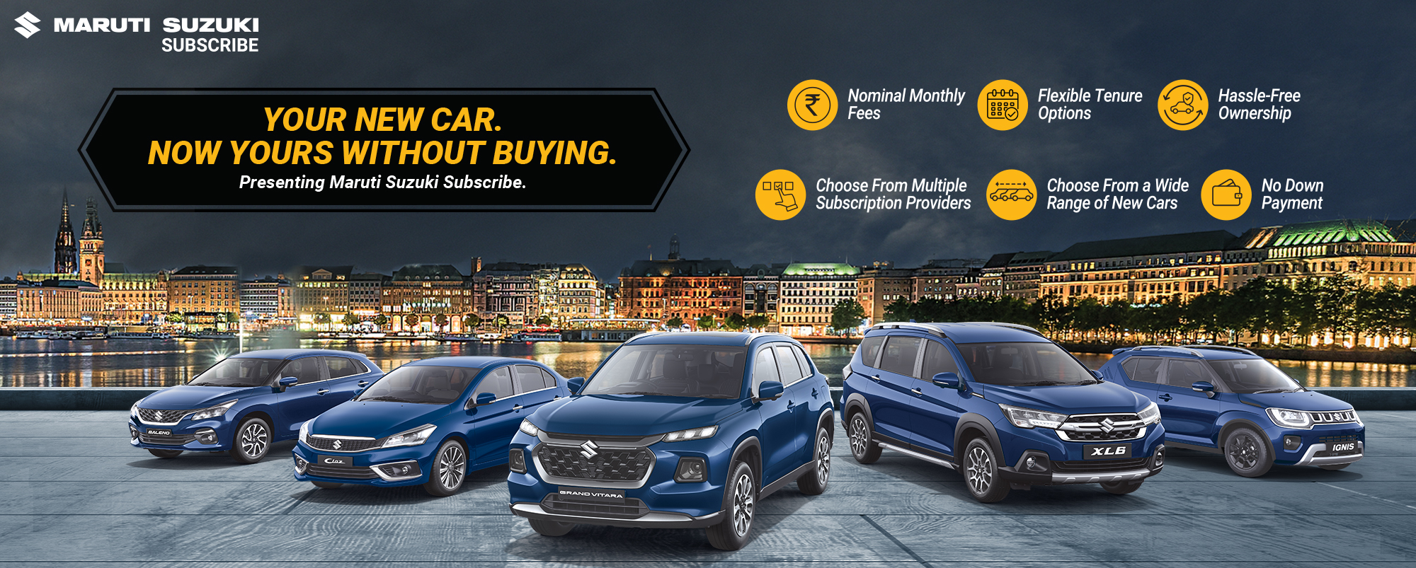 Maruti Suzuki Subscribe enables all customers to enjoy driving their preferred Maruti Suzuki cars without having to deal with all the financial responsibilities that come with owning a car.All you need to do is opt for a monthly subscription plan at a fixed monthly fee, which includes the routine maintenance and insurance costs, and choose a flexible tenure. At Prem Motors in, IDC Sector 16, Gurugram, all Hatchback, Sedan, SUV, the MUV models line-up includes Baleno, Invicto, EVitara, Jimny, Ciaz, Ignis, Fronx, Grand Vitara, XL6. Here, you will enjoy Maruti Suzuki Subscribe benefits such as: